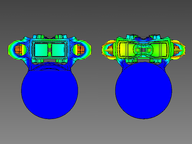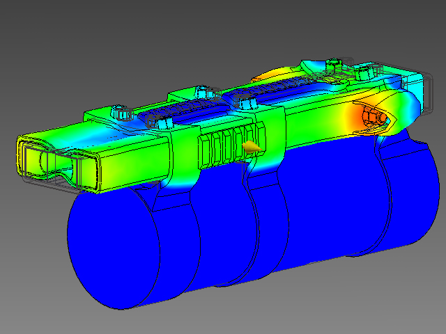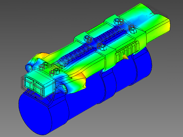 This test demonstrates the failure points in the design under the massive electromagnetic forces, however, the design would never reach such a point of failure as the force of 55,000N is only applied for approximately 1mS or less.