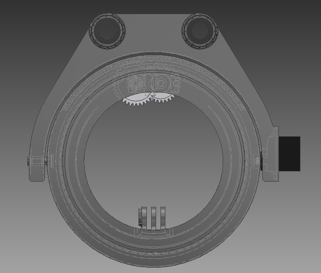 3.) Fix the 30 tooth gear to the roll servo, center the servo, and then either bolt or glue the servo to the inner ring.