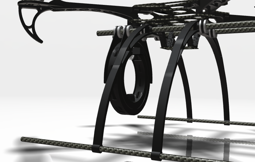 9.) Now the rubber dampers can be inserted into the gimbal mounting holes and the gimbal can be attached to the loading pipes of the frame.