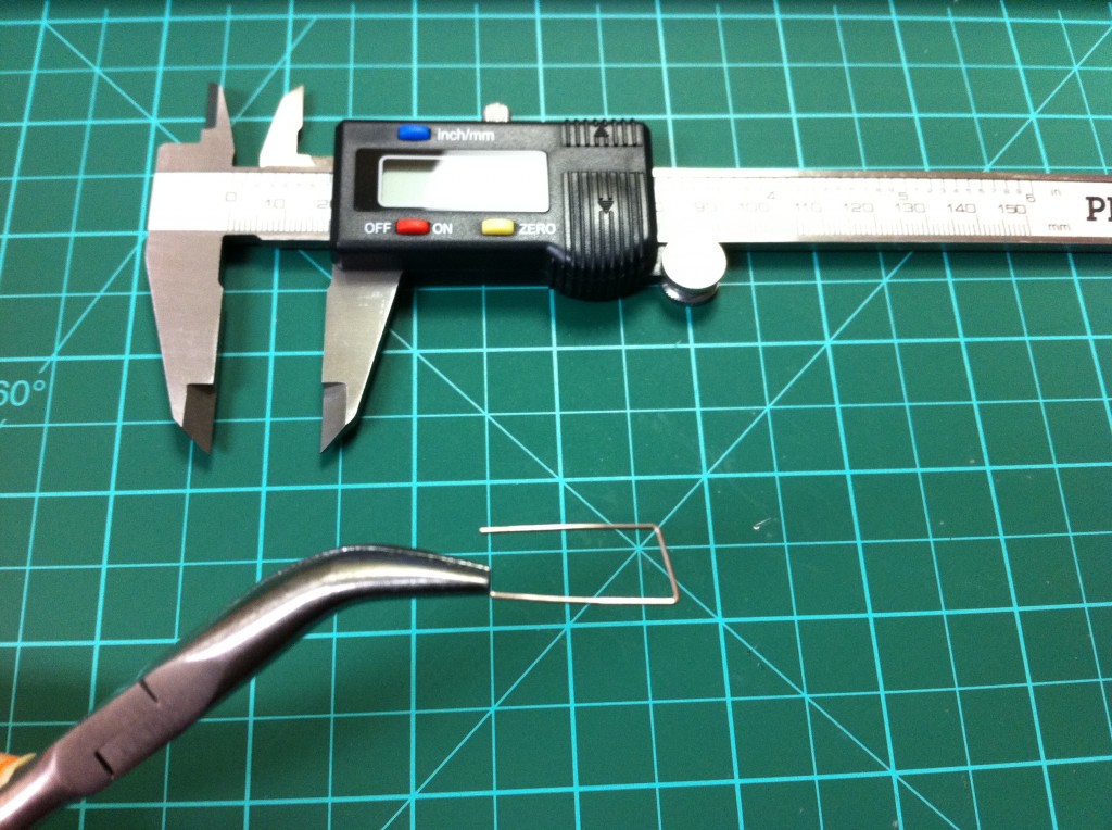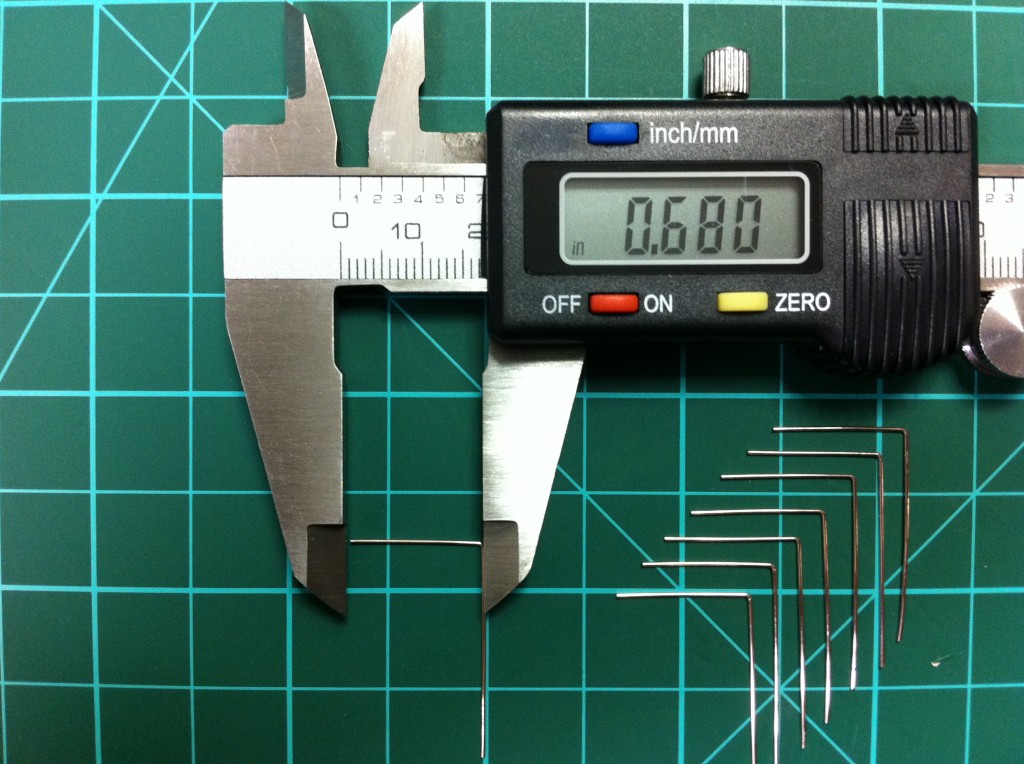Bend the wire 90 degrees after the 0.660″ mark. The resulting segment should measure about 0.680″ from the outside of the bend.
