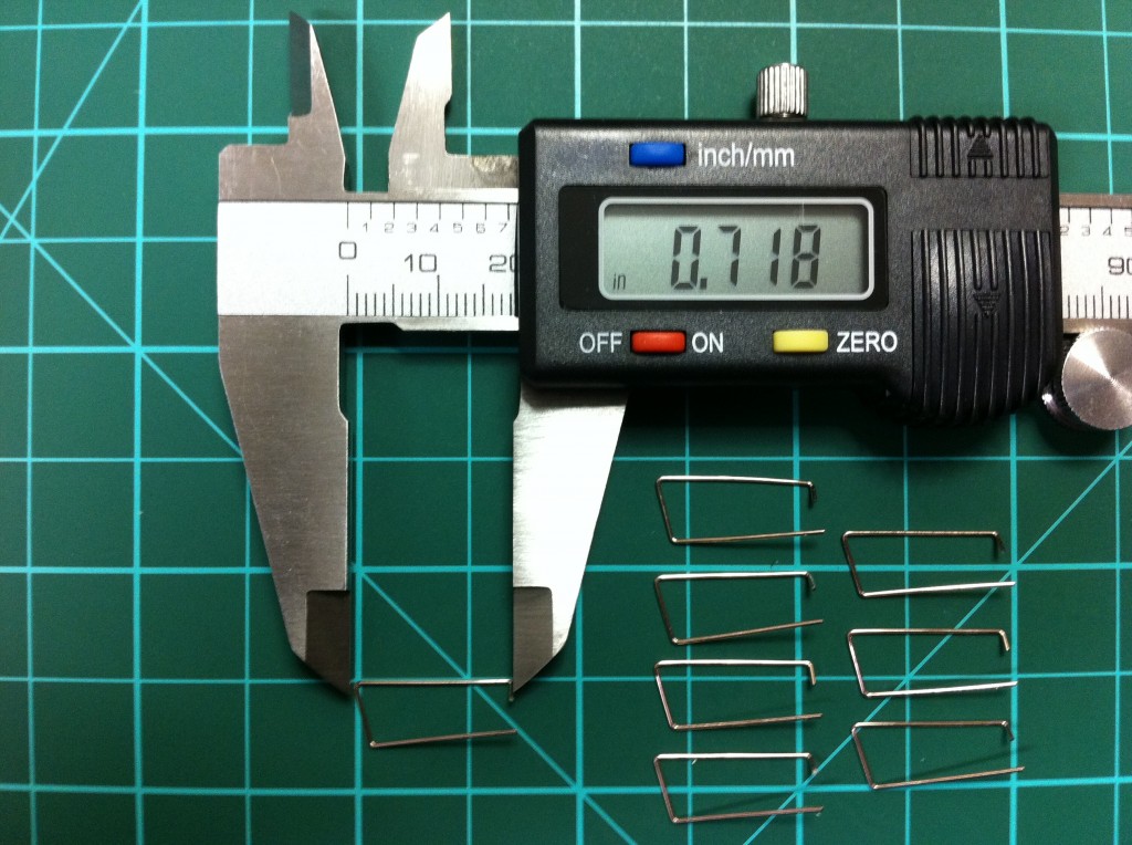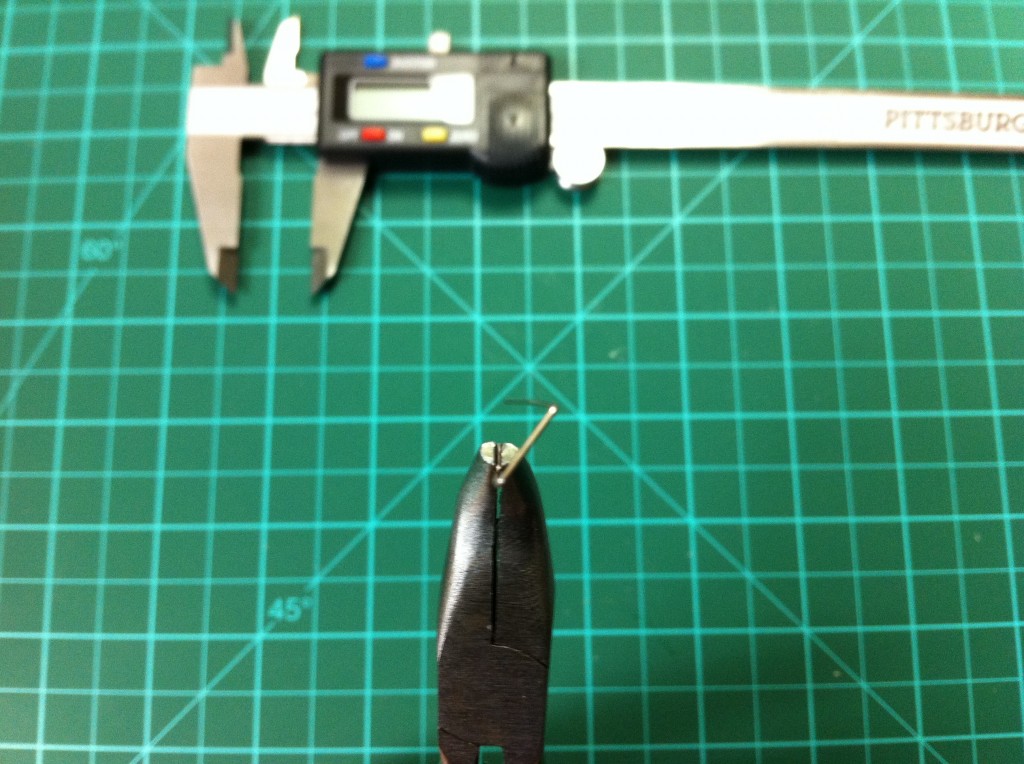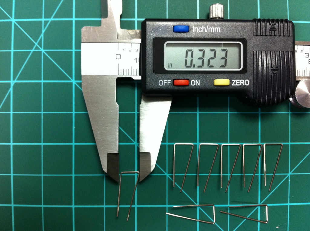 Begin by cutting eight wires to a length of precisely 1.751″. This is best accomplished by using wire cutters to make a rough cut at about 1 13/16″ and then filing the wire to the proper length.