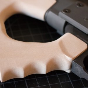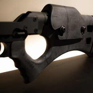 This is a 3D printed thumbhole stock for the Serbu RN-50. The stock has adjustments for both the length of pull and cheek riser. Printed parts are provided unpainted and without sanding (as pictured). They may be used as is or sanded smooth. The stock is offered in two different options: