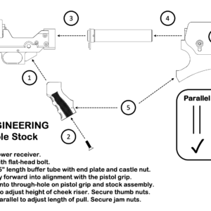 - Two 3/8″ steel bolts run the length of the stock for added strength and durability